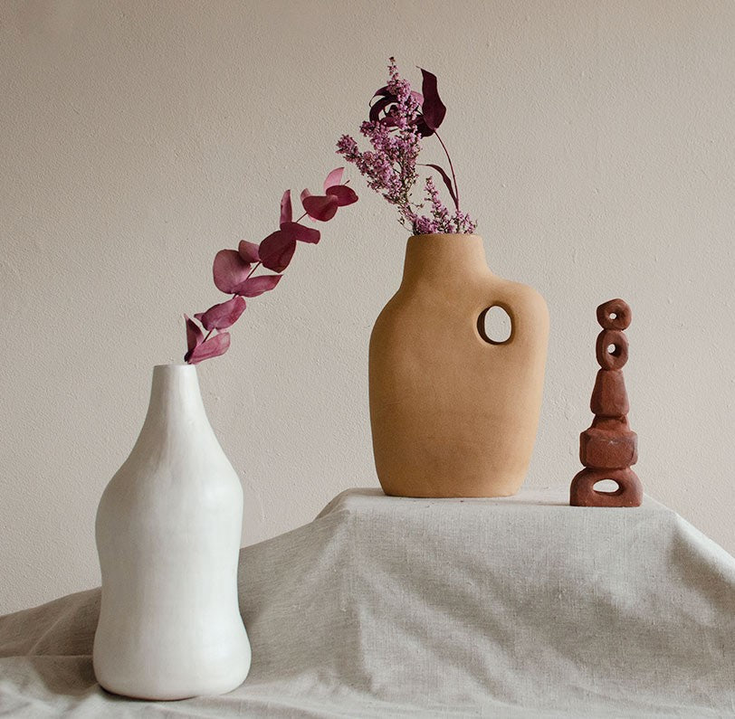Jen's works are entirely hand-built and fired in her studio in central Cape Town. She aims to provide viewers with a tactile experience through texture and a sense of permanence in her clay creations. Her pieces evoke familiar shapes, inviting viewers to touch, hold, and explore the sculptural forms. Clay, with its earthy energy, adds grounding to any environment when transformed into fired art.